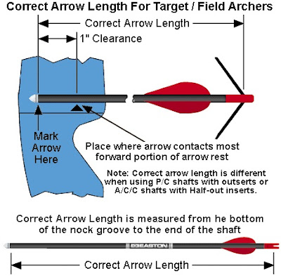 Pokoknya diukur dari cekungan nock ke ujung shaft yang keliatan. Atau dari cekungan nock ke belakangnya point. Makanya disebut panjang BOP (Back Of Point).