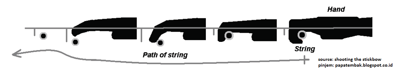True center shot cuma boleh digunakan kalo kita pake release aid (mechanical release) kayak yang biasa dipake sama compound bow. Karena kalo releasenya pake tangan kayak di recurve, longbow, horsebow, dll si center shot harus agak keluar dikit (outside center shot) untuk mengkompensasi release dari jari yang bakalan belok dikit.