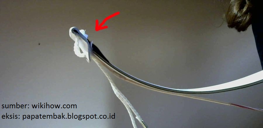 Cara pasang bow stringer bagian “pocket” ke limb nock bawah