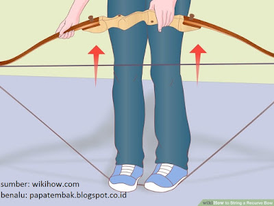Ini metode yang cukup sulit terutama untuk bow/busur yang draw weightnya tinggi. Harus ekstra hati2 kalo belum pernah.