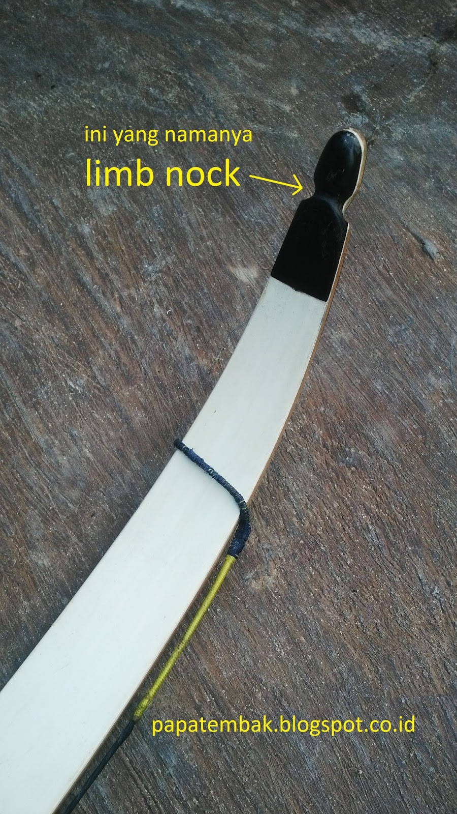Di gambar ini stringnya udah terpasang, aslinya belum. Simpul string masih di tengah limb.