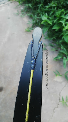 Pasang bagian pocket ke limb nock bawah, yang udah ada stringnya tadi, harus nyangkut sempurna di tengah dan gak miring2.