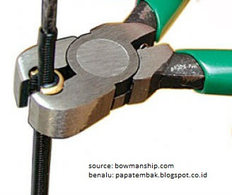 Yang ini murah meriah, tinggal iketin aja benang di titik yang diinginkan, asal agak nonjol dikit lebih gede dari string biar si nock gak bisa lewat. Terus iket mati biasa aja. Jangan dulu dilem kalo belum tau posisi pasnya dimana. Cobain tembak beberapa arrow/anak panah. Kalo belum pas bisa digeser sedikit, atau bongkar lalu pasang yang baru kalo susah.