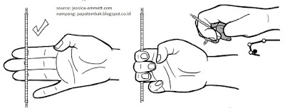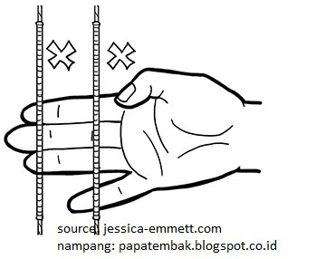 Lanjut ke cara megang string. Harus pake finger tab ya, biar gak terlalu sakit tangannya. Di gambar ini finger tab gak diliatin biar jelas posisi jarinya.