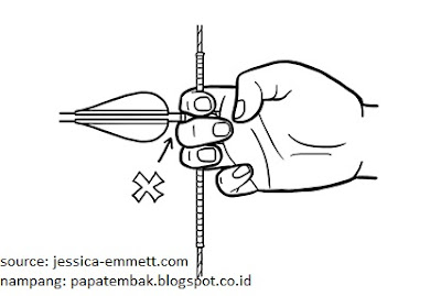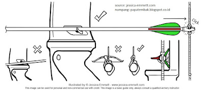 Posisi naro arrow/anak panah di arrow rest juga diperhatiin, jangan sampe jatoh dari arrow restnya. Karena bahan arrow rest biasanya sangat fleksibel untuk standard bow.