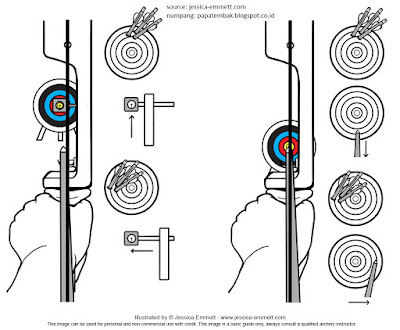 Kalo pake teknik membidik yang biasa mungkin agak kesulitan. Karena tetap anak panah bakal berada di bawah mata dominan.