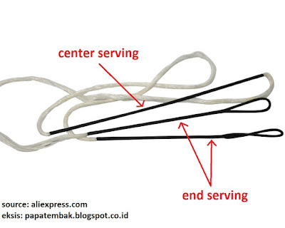Buat yang belum tau, serving jig itu fungsinya sebagai alat bantu masang benang serving di bowstring. Ini loh yang namanya serving, fungsinya serving itu buat ngelindungin bowstring dari gesekan terhadap busur.