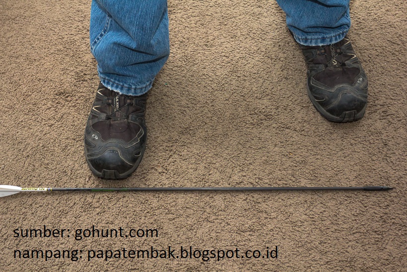 Dibawah ini adalah pemanah kanan (bukan kidal), target ada di sebelah kanan (sesuai arah arrow/anak panah di lantai). Ujung arrow mengarah ke bagian tengah target (center line).