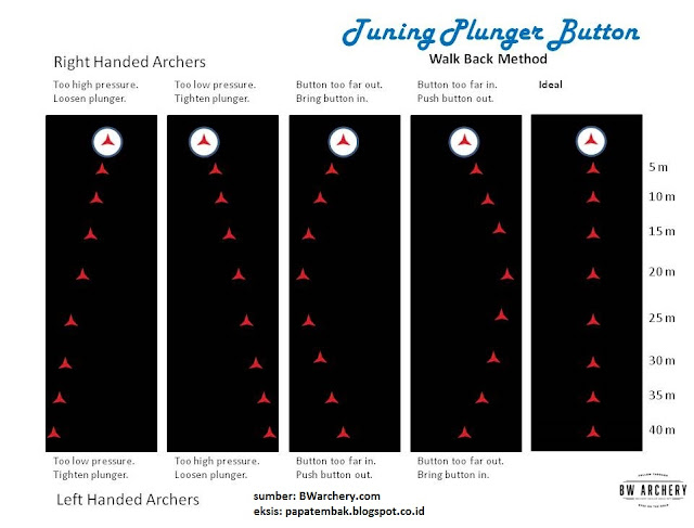Pada ronde pertandingan tertentu, seorang pemanah diharuskan memanah dari beberapa jarak. Misal untuk ronde standard bow ada yang mengharuskan memanah dari jarak 30, 40, dan 50 meter. Idealnya saat jarak berubah, sight/fisir cuma harus geser atas atau bawah aja. Kanan kirinya gak berubah. Tapi hal ini cuma bisa dicapai kalo peralatan memanah kita sudah dituning dengan baik. Salah satu metodenya adalah yang disebut Walk Back Tuning atau ada juga yang nyebut metode ini sebagai Super Tuning. Walk Back kalo diartiin ke bahasa Indonesia artinya jalan mundur.