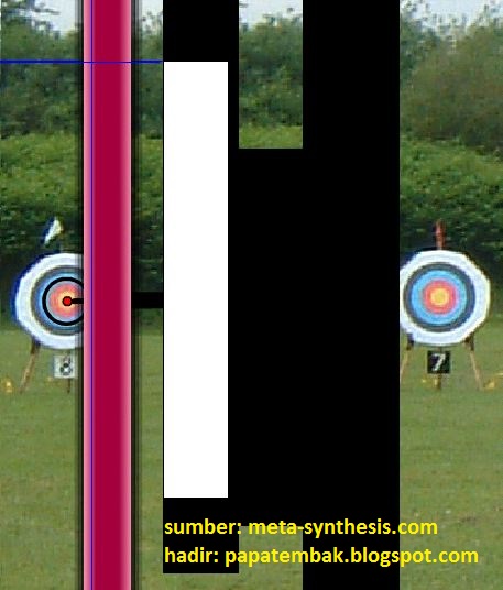 Apaan sih line up? Pas full draw/anchor, kalo diperhatiin sebenernya string bakalan keliatan, cuma ngeblur alias gak jelas. Nah, kalo teknik memanahnya dilakukan dengan konsisten mulai dari stance sampe anchor, posisi string tersebut bakal diem di tempat yang sama.