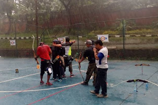 Terus tiba2 sore hujan angin bonus petir dikit. Yang tidak berhasil membuat para pemanah mundur. Semua memutuskan buat terus maen sampe beres, termasuk ibu2nya juga. Super deh.