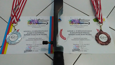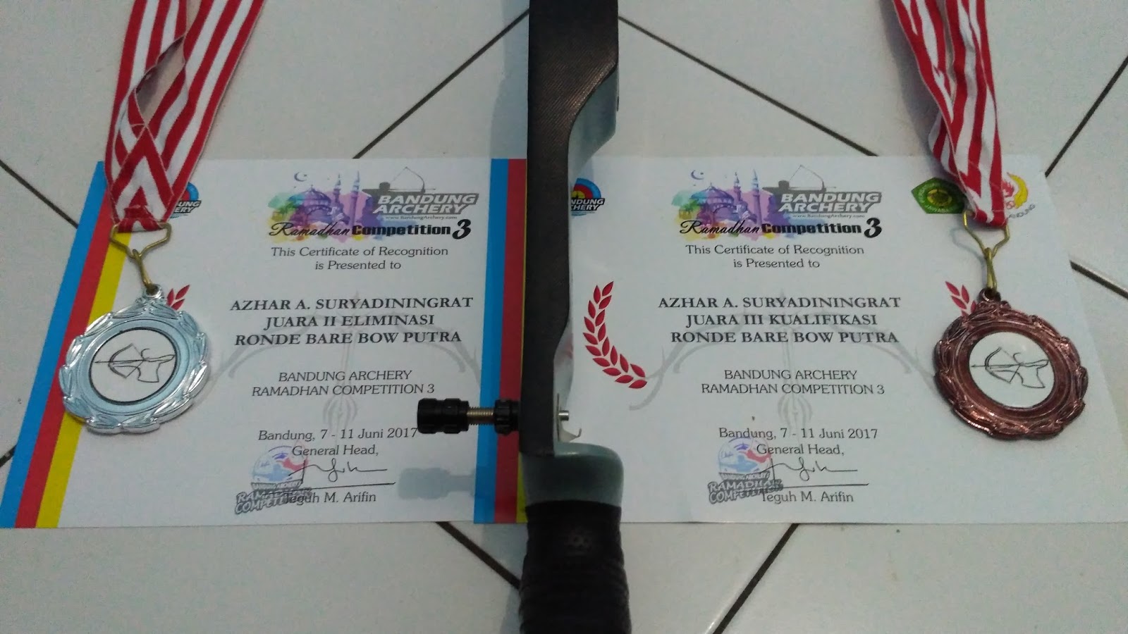 10 Juni 2017. Ramadhan Open 3. Juara 3 kualifikasi barebow putra. Semakin berat aja persaingan di barebow. Best scorenya 279/300 yang berarti rata2 9,3/arrow. Skor saya 275/300.