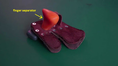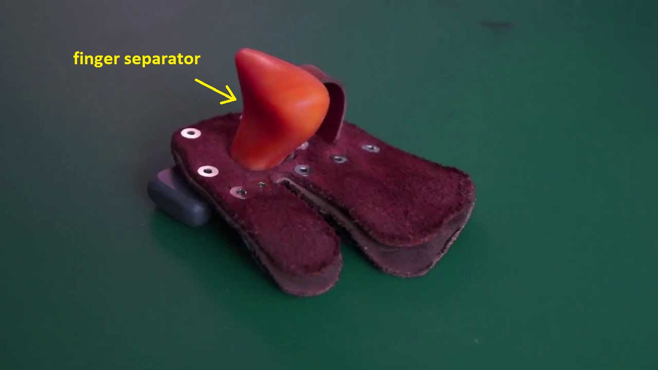22.3.8.1. A separator between the fingers to prevent pinching the arrow may be used. An anchor plate or similar device attached to the finger protection (tab) for the purpose of anchoring is permitted. The stitching shall be uniform in size and colour. Marks or lines may be added directly to the tab and shall be uniform in size, shape and colour. Additional memoranda is not permitted. On the bow hand an ordinary glove, mitten or similar item may be worn but shall not be attached to the grip of the
